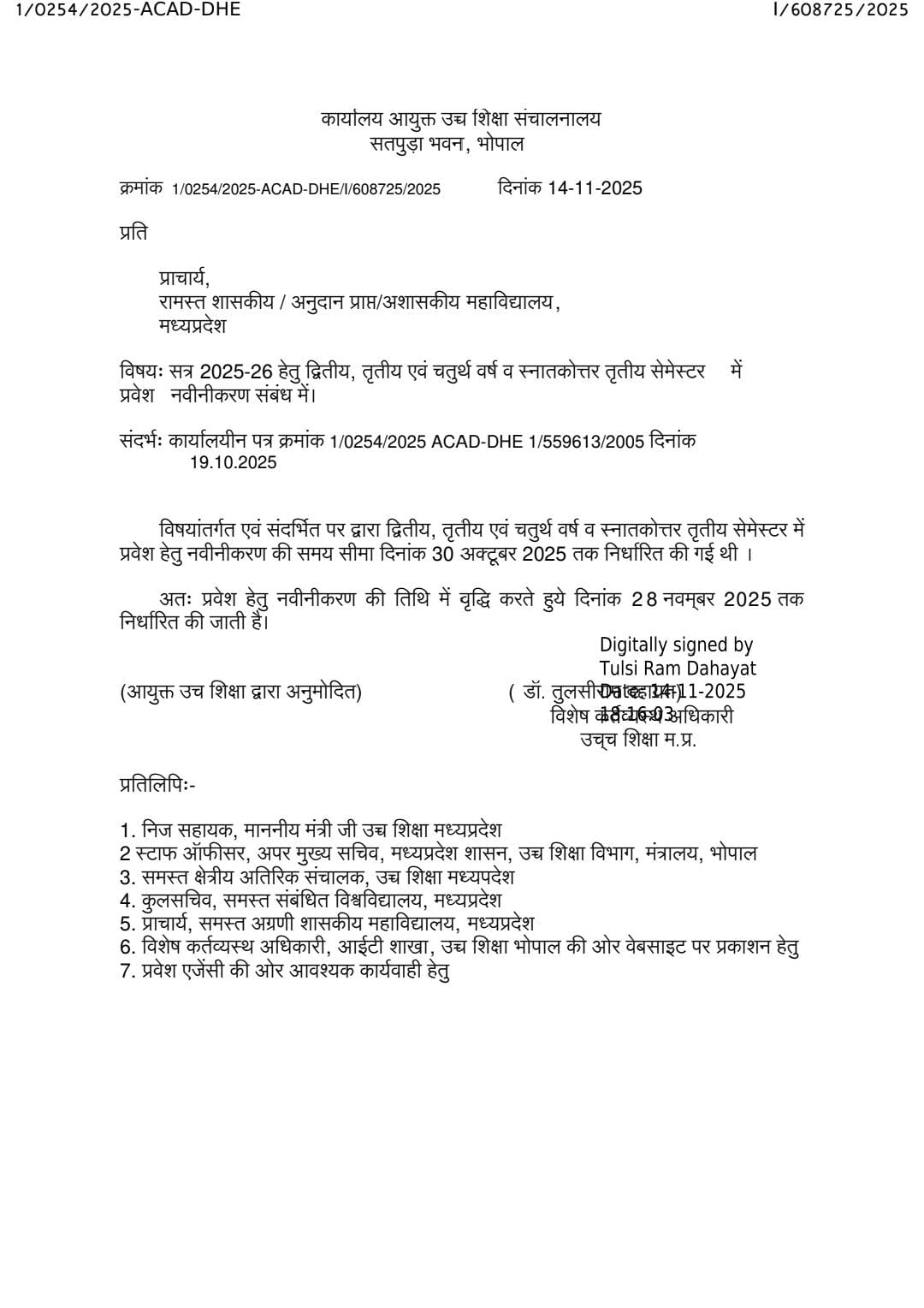 - प्रवेश नवीनीकरण की तिथि में वृद्धि (17/11/2025)