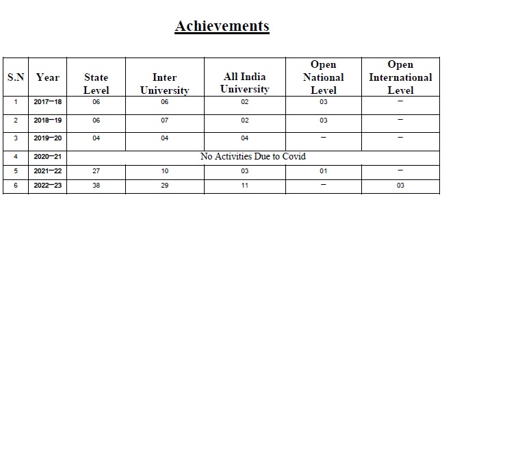 The department actively collaborates with various institutions across the district to organize diverse sports activities, creating opportunities for intercollegiate competitions and skill enhancement. The proud alumni of the institution play a pivotal role in this, contributing their expertise to train and mentor current students. This synergy has borne fruit, with our students securing numerous accolades at state, national, and international sports events.